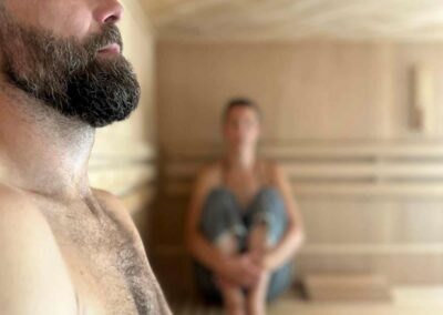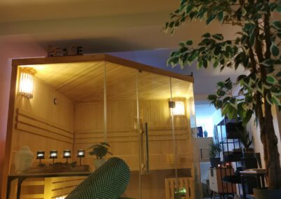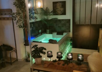 Le bain balnéo en introduction d’un massage et le sauna pour prolonger et accentuer les effets de celui-ci.