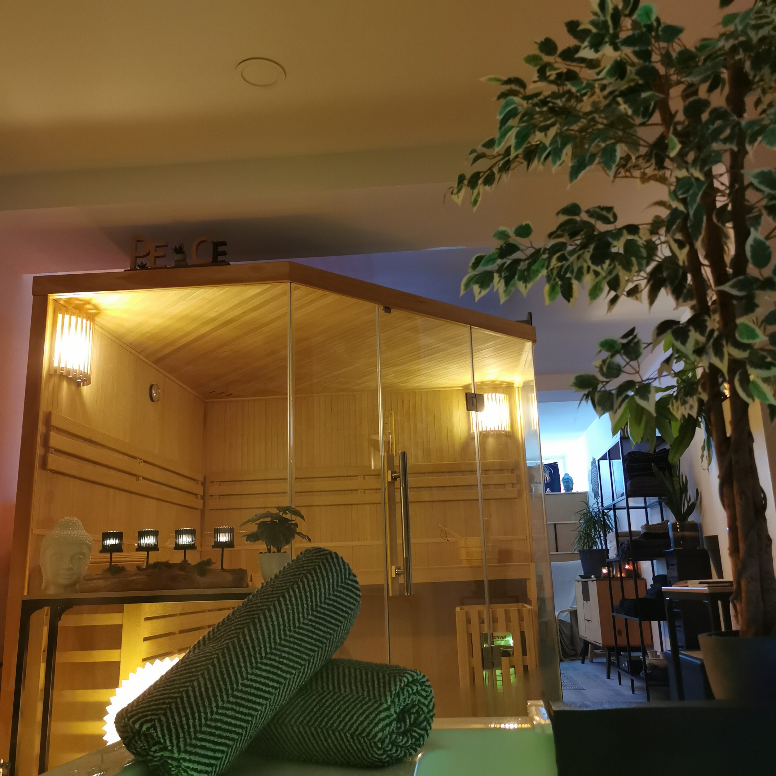 Le bain balnéo en introduction d’un massage et le sauna pour prolonger et accentuer les effets de celui-ci.
